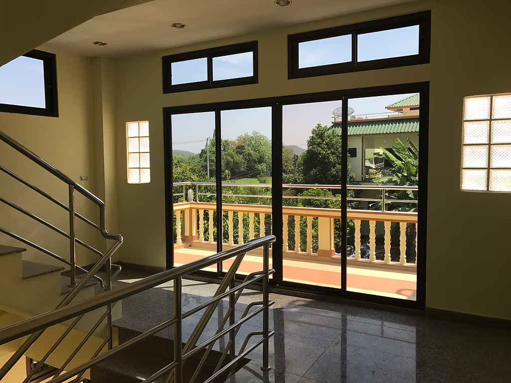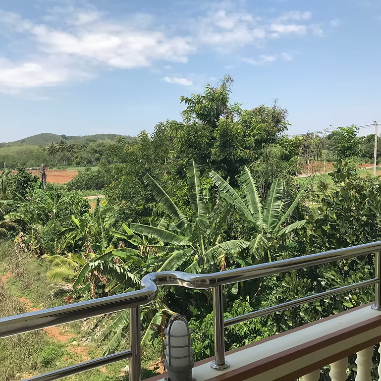 In Pak Chong, Nakhon Ratchasima, Thailand. Nahe beim Khao Yai National Park. Hügelig, ruhig, abgelegen mit atemberaubender Aussicht. Viel Wald- und Vegetationsfläche mit sehr guter Luftqualität und dennoch in der Nähe der Stadt.
